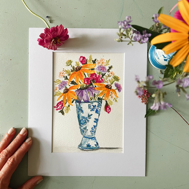 The paintings in this collection were all done outside under the shade of our big tree with the garden in full bloom… the perfect sort of day that has you wondering if going inside even needs to happen at all.