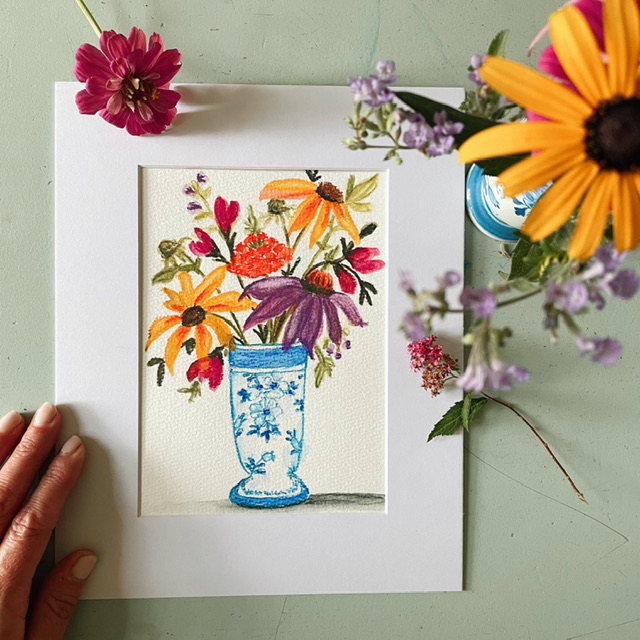 The paintings in this collection were all done outside under the shade of our big tree with the garden in full bloom… the perfect sort of day that has you wondering if going inside even needs to happen at all.