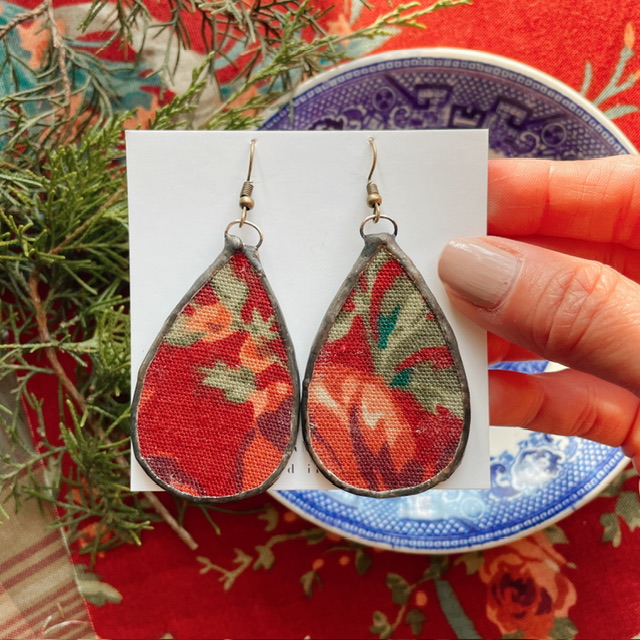 The earrings in the "Woven Together" collection are made of handcrafted, soldered pendants with a beautiful woven fabric detail. These earrings are such a joy to create, they are truly one of a kind.