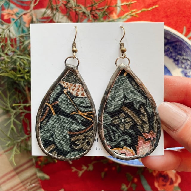 The earrings in the "Woven Together" collection are made of handcrafted, soldered pendants with a beautiful woven fabric detail. These earrings are such a joy to create, they are truly one of a kind.