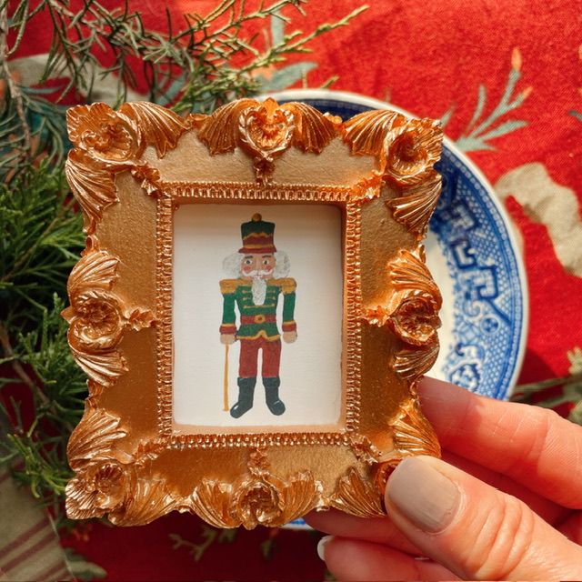 The artwork in this collection each have a print of my original artwork in a beautifully detailed gold, acrylic frame. They are perfect for a gallery artwork wall, propped on a shelf, or used as ornament on your tree.